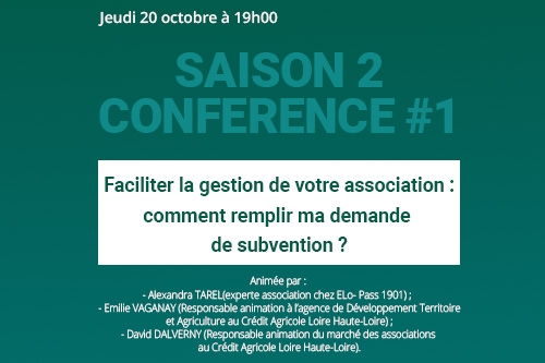 Le Crédit Agricole Loire Haute-Loire, partenaire d'une association sur 2 et ELO Pass 1901, point d'appui à la vie associative à Saint-Etienne, vous proposent cette conférence en ligne.