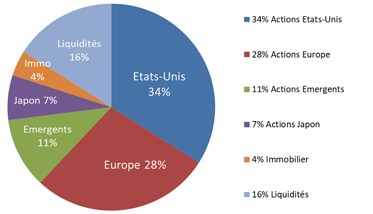 Des marchés actions en ordre dispersé ce mois-ci, avec une baisse en Europe et au Japon comprise entre -2% et -4%, et une forte hausse aux Etats-Unis et pour les émergents allant de +4% à +7%. Le dollar recule d’environ 5 % et contribue à la forte appréciation des métaux précieux. Nos portefeuilles types progressent de 1,3% ce mois-ci.