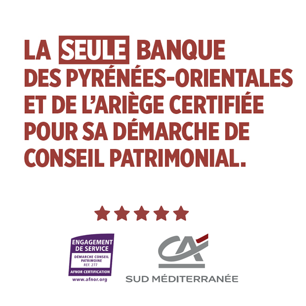 Les options qui peuvent vous être présentées ne constituent ni des offres formalisées, ni un engagement de souscription. Les produits et services peuvent être souscrits sous conditions et sous réserve d’étude et d’acceptation de votre dossier par la Caisse régionale. Renseignez-vous auprès de votre conseiller Crédit Agricole.