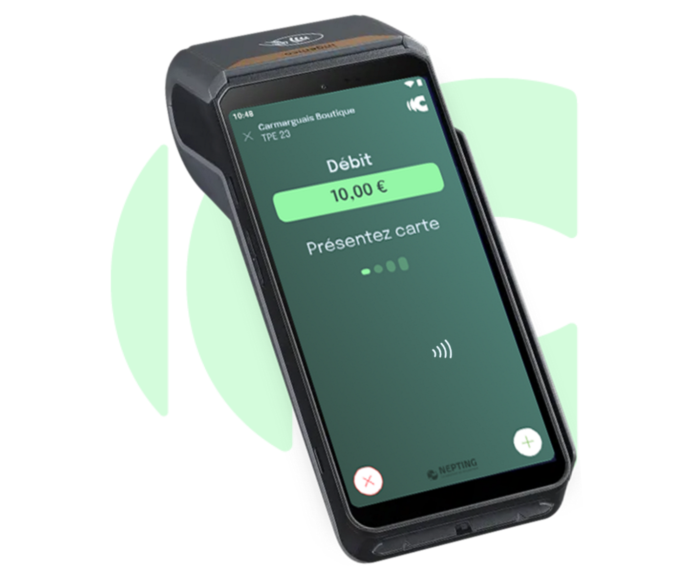 Parfait pour un encaissement au comptoir avec TPE présenté au client